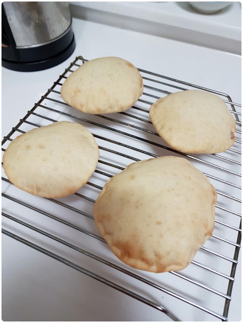 중간중간 빵빵하게 올라오는 공갈빵의 모습이 신기한지 아이들이 자꾸만 확인하려 들었습니다. 시중 제과점에서 사먹었던 공갈빵과는 향의 차이나 두께감의 차이는 분명 있었지만 호떡믹스로 공갈빵을 아이들과 만들면서 즐거운 추억하나 남겼습니다.