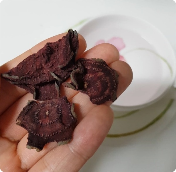 . 비트차 - 비트를 편으로 썰어 건조기로 건조한 후 따뜻한 차로 우려 마십니다.
